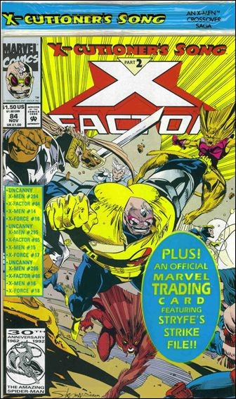 Continued from Uncanny X-Men #294. This issue: X-Factor hunts down Cable for the shooting of Xavier, and an explosive battle erupts between X-Factor and X-Force! Meanwhile, the X-Men also arrive on the scene -- but whose side do they choose? Plus: The search for Jean and Scott continues! Story continues in X-Men #14.Note: This issue came with a Stryfe's Strike File card featuring Caliban.SynopsisX-Force is stunned, but that doesn't mean they don't have a plan. Having just seen news coverage of the assassination attempt of Professor Charles Xavier, and having seen a man that looks like Cable be the main suspect, it is proposed that a team heads to New York to try and find out the truth of the recently transpired events. The mission may be suicide, but that's why Cannonball only sends...