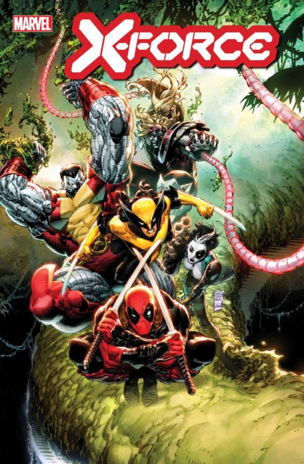 BACK FROM THE FUTURE! The new team of COLOSSUS, WOLVERINE, DEADPOOL, OMEGA RED, SAGE and DOMINO must contend with BEAST’S plans…and the future! A blast from their past will have readers talking, and sets the stage for the next era of X-FORCE!