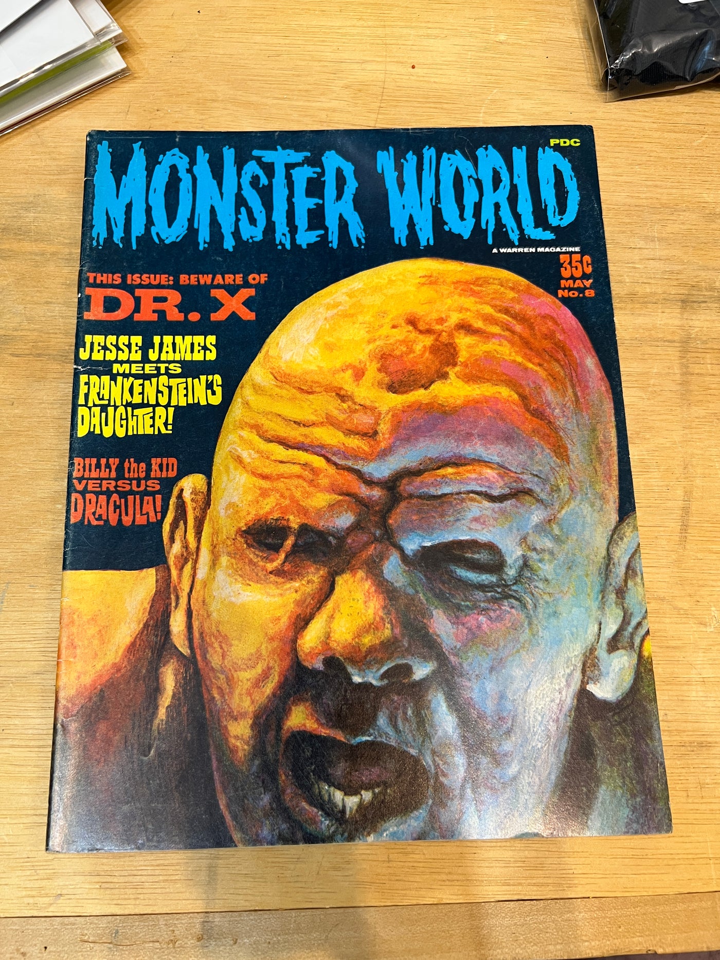 This issue contains the following filmbooks: Doctor X, The Golem, Jesse James Meets Frankenstein's Daughter, Billy the Kid vs. Dracula, and The Day the World Ended. Also included are reprinted articles "The Monster's Victim" and "Behind the Ape Ball," and a one-page short story (Countdown to Doom) by Charles Nuetzel and Viktor Vesperto. Cover painting of the mad doctor from Dr. X is by Ron Cobb.