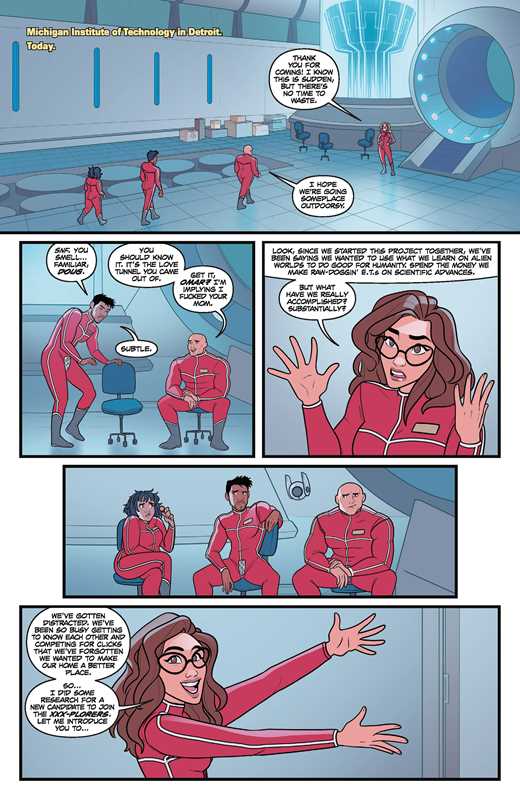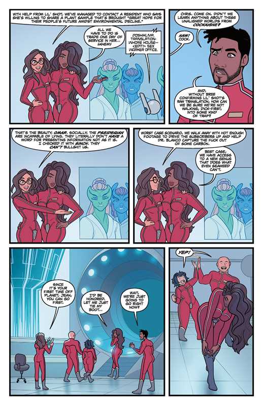 Sex Criminals meets the Fantastic Four in MONEY SHOT, a sexy sci-fi space adventure about scientists exploring the exotic side of alien civilizations! A STORY ABOUT SCIENTISTS HAVING SEX WITH ALIENS FOR THE GLORY OF MANKIND—AND MONEY. Break ups are hard, but when the replacement is scorching-sun hot, life gets a lot easier. With a founding member on the outs, Chris seeks a replacement whose hotness might melt the icecaps. But when the earth is overrun by a vicious species that can't be reasoned with or sexed up, the fractured team will have to hold together long enough to (un)screw the entire planet. Read the entire super hot, sexy science fiction MONEY SHOT series! Money Shot Vol. 1 collects issues #1 to #5. Money Shot Vol. 2 collects issues #6 - #10 Money Shot Vol. 3 collects issues #11 - #15