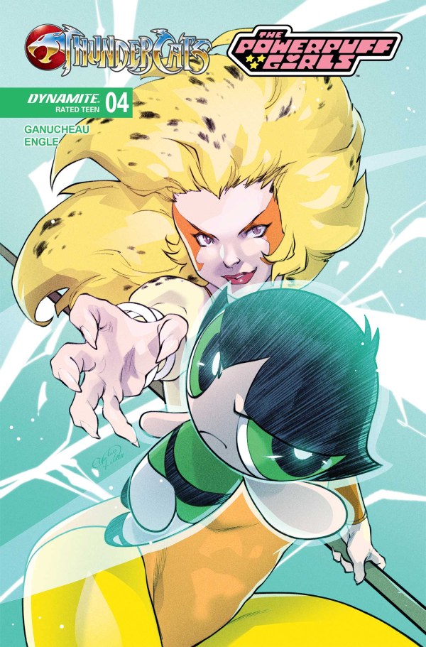 With their ultimate enemy finally revealed, the Titans of Townsville and their accompanying cadre of liberated ThunderCats must find a way to defeat this seemingly implacable foe and they'll need to do it quickly if they want to avoid suffering the same fate that has befallen the other inhabitants of Third Earth! But even with the help of their trusty Thunderan weapons, can the unpowered Powerpuff Girls really go toe-to-toe against an entity with the ability to encrystalize its opponents? There's only one way to find out and that's to pick up this fantastic fourth and final issue of ThunderCats/The Powerpuff Girls from sparkling creators PAULINA GANUCHEAU and COLEMAN ENGLE-featuring bewitchingly bedazzled covers by GANUCHEAU and ENGLE as well as CORAN KIZER STONE, ZULEMA LAVINA, and EMILIO PILLIU!