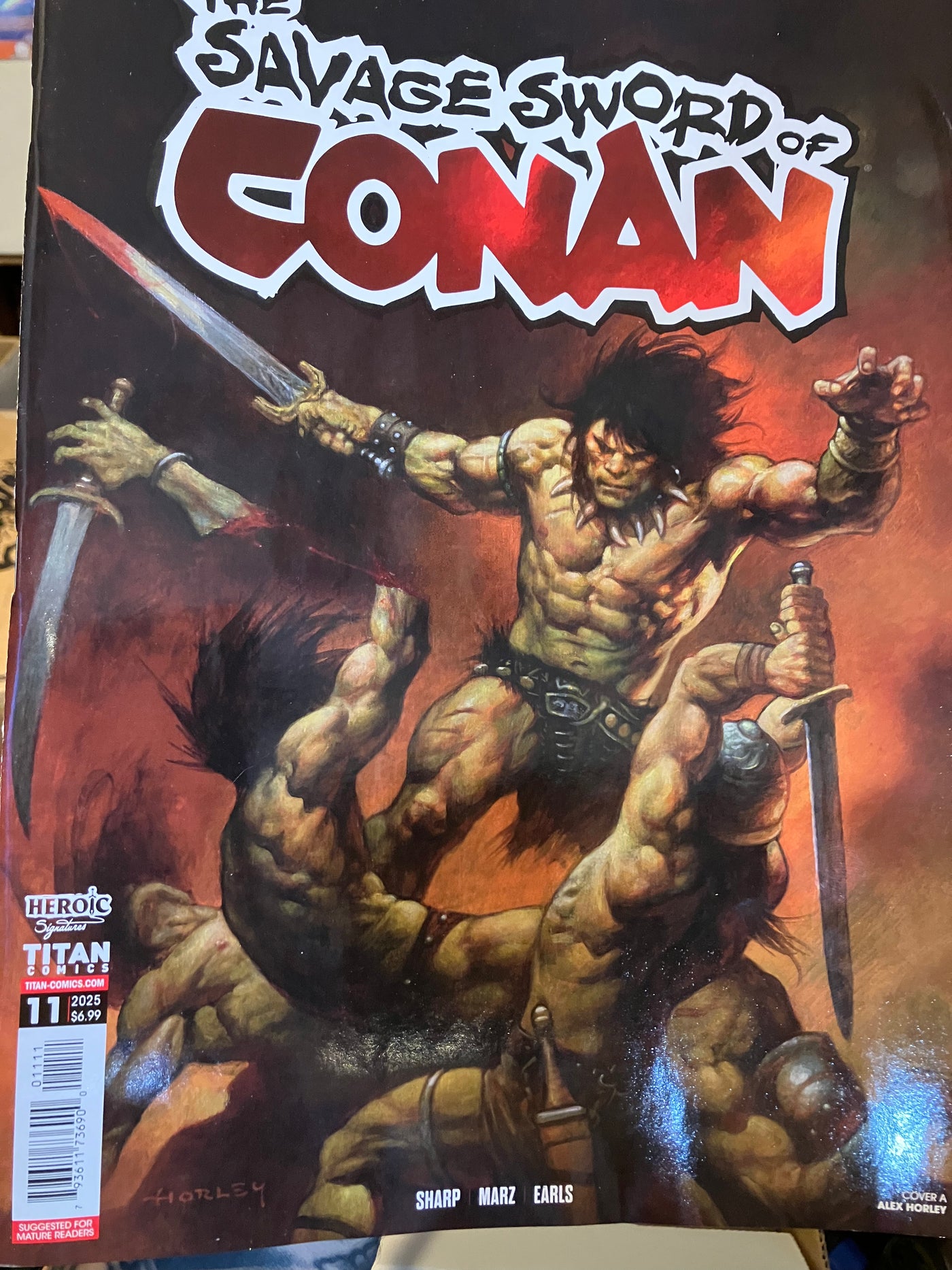 THE SAVAGE SWORD OF CONAN CONTINUES ITS RELENTLESS RAMPAGE FROM TITAN COMICS AND HEROIC SIGNATURES! Featuring writer/artist Liam Sharp’s triumphant return to the Hyborian Age with a spellbinding CONAN epic, the debut of Robert E. Howard’s CORMAC MAC ART brought to life by writer Ron Marz and artist Danny Earls, colossal covers from Alex Horley and Liam Sharp, an array of astonishing pin-ups, and more, SAVAGE SWORD OF CONAN Issue #11 lays siege to comic shop shelves this October!