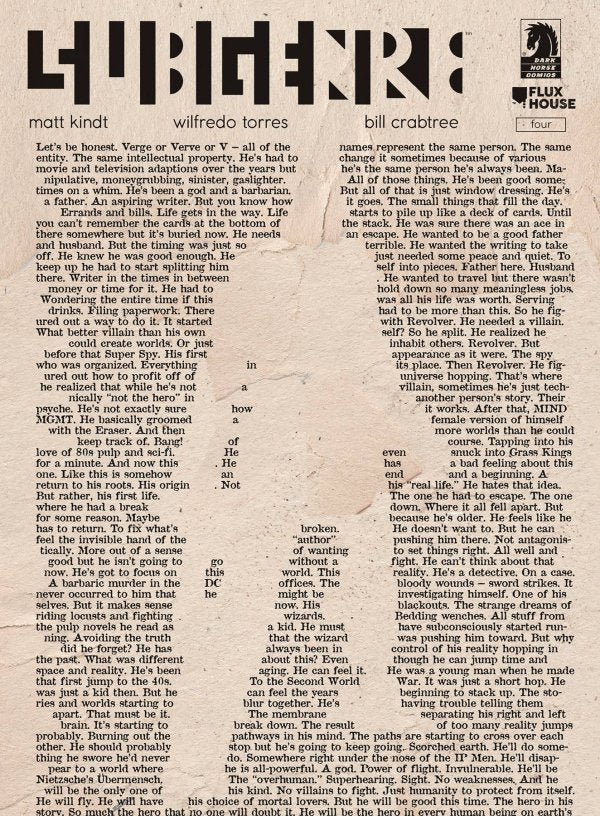 Caught between multiple universes of sword and sorcery, a high-tech cyberpunk dystopia, 1970s film noir, and more; our hero is determined to solve the mystery of his own insane existence. Subgenre is the latest release from Flux House Books, a new boutique imprint that will feature the writing (and sometimes) art of acclaimed comics creator Matt Kindt, with crime, science fiction, horror, and humor stories, all told and presented in startling and untraditional ways.