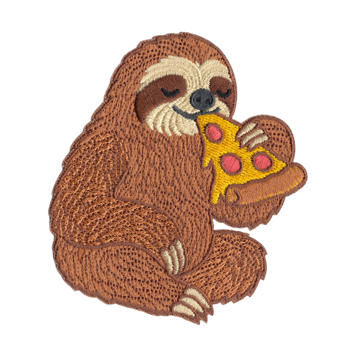 Why rush when you can sit, smile, and enjoy a giant slice of pizza? This embroidered patch features an adorable sloth sitting criss-crossed applesauce, eyes closed in cheesy bliss while devouring a gooey pepperoni slice. Measuring 3 inches wide by 3.38 inches tall, this patch is the ultimate combo of slow living and fast food. Perfect for jackets, backpacks, hats, or anywhere that deserves a lazy-but-happy vibe. Fully embroidered and cut out to the shape of the design, this iron-on patch is as durable as it is delicious-looking (just don't actually eat it). Whether you're a hardcore pizza lover, a sloth fan, or simply someone who believes snacks are a lifestyle, this patch is for you. Add it to your collection and let the world know: slow and steady wins the pepperoni.