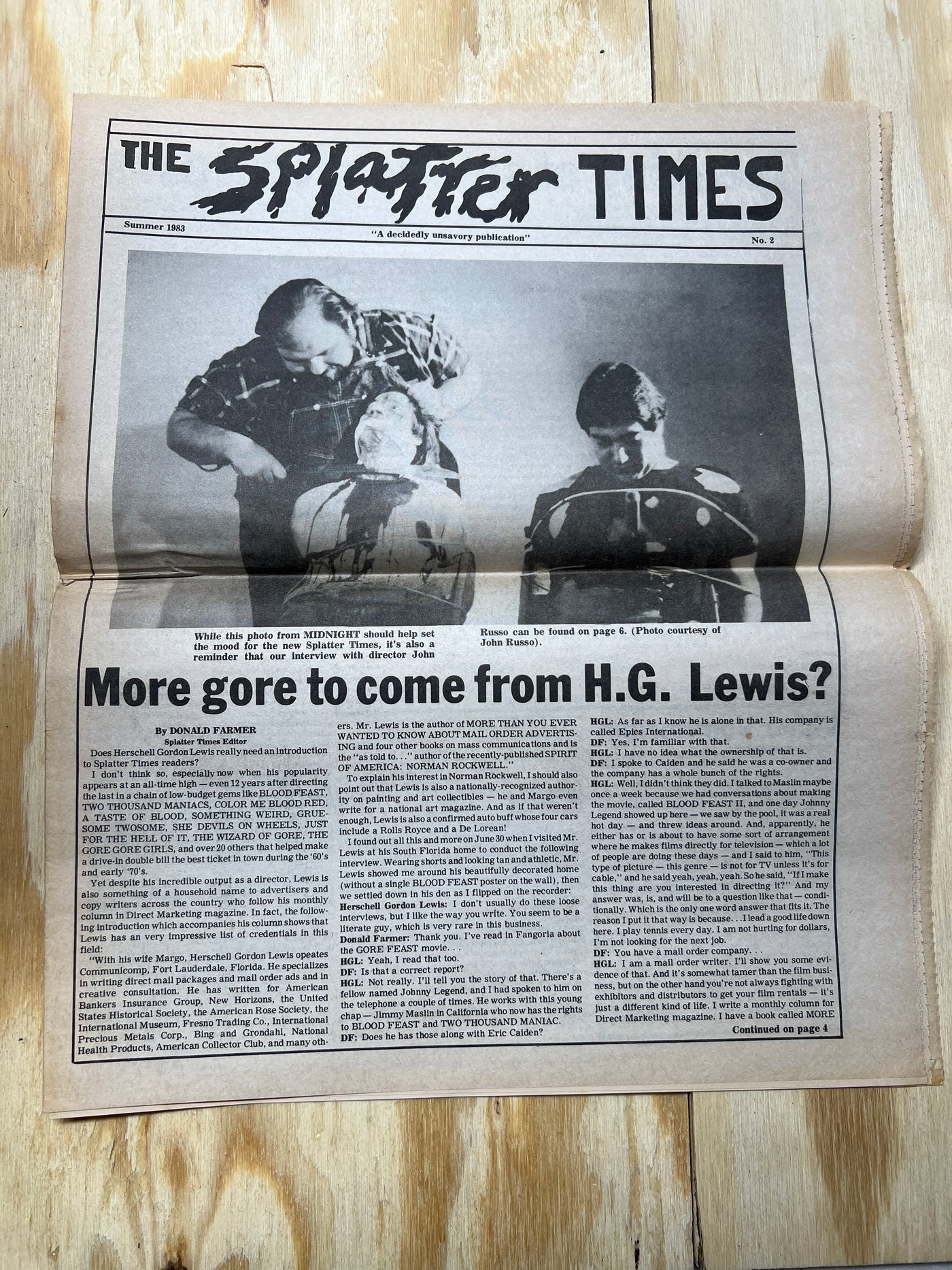 Splatter Times #2 (1983 Newspaper / Newsprint Fanzine)