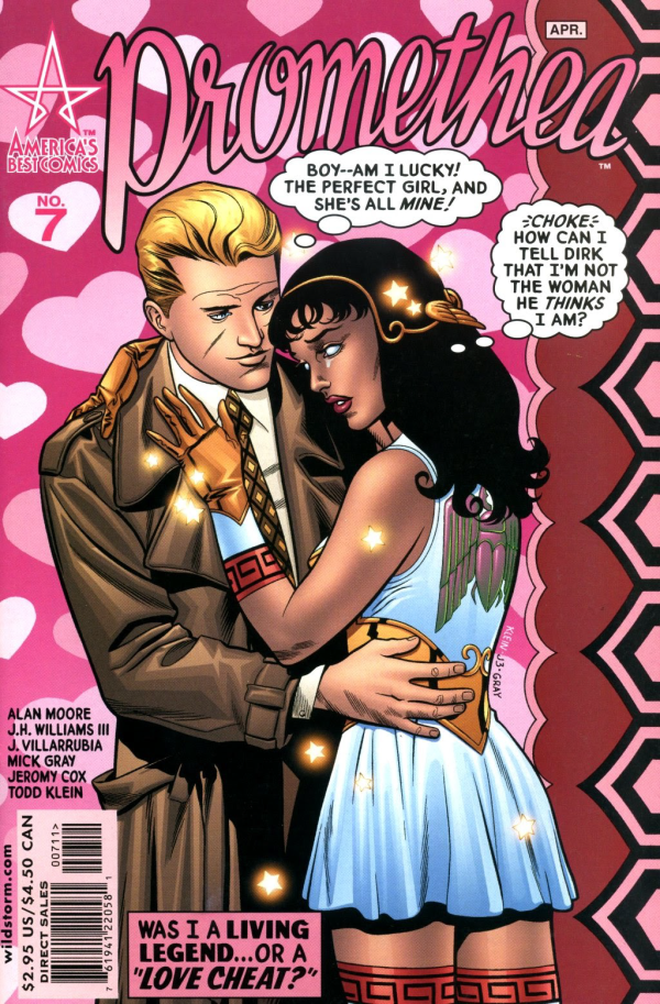 A special issue featuring a computer-collage sequence illustrated by Jose Villarubia (VEILS). Strange and sulphurous clouds continue to gather over the life of Sophie Bangs while she struggles to understand the nature of the deal that has transformed her into a two-thousand-year- old living legend. Benny Solomon and his Mephistophelean version of Murder, Inc. turn up in New York looking for the latest incarnation of Promethea, while Sophie continues her trek across the Immateria to discover her unearthly birthright. This time she's accompanied by '40s comic-book creator William Woolcott, the only male ever to serve as a vessel of the half-real heroine.