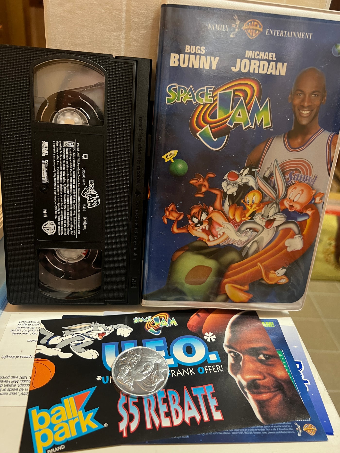 Case is cracked in a few places, but inserts and tape are all mint.