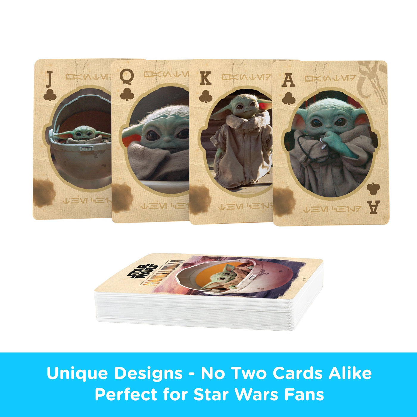 The Mandalorian - The Child Playing Cards THE CHILD DECK OF PLAYING CARDS: Play your favorite card games with friends and family as you secure the asset with this deck of The Child playing cards featuring images of the infamously cute bounty from The Mandalorian TV Series UNIQUE DESIGN ON EVERY CARD: This Mandalorian deck of playing cards includes 54 cards (52 playing cards and 2 jokers). Every single playing card features its own distinct The Child' themed design and art. No two cards are alike LOOKING FOR STAR WARS GIFTS? This Star Wars deck of cards is the ultimate gift for Star Wars fans of all ages. Perfect for game night, birthdays, stocking stuffers, white elephant, Holiday gifts, kids and adults will absolutely love receiving it 100% OFFICIALLY LICENSED STAR WARS MERCHANDISE: This deck of Star Wars playing cards is designed by AQUARIUS and officially authorized by Lucasfilm. They're the perfect piece of Star Wars memorabilia to add to your collection