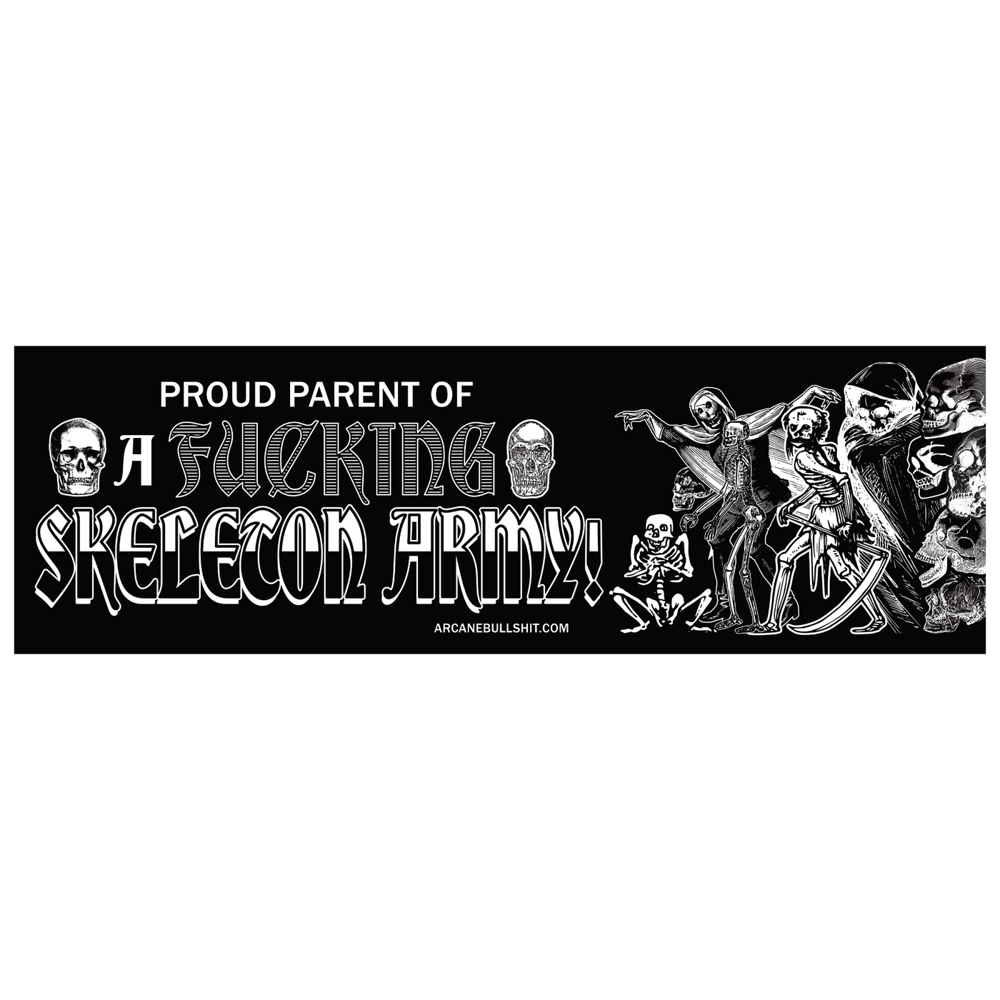 "Proud Parent of a Skeleton Army" Bumper Sticker by Arcane Bullshit