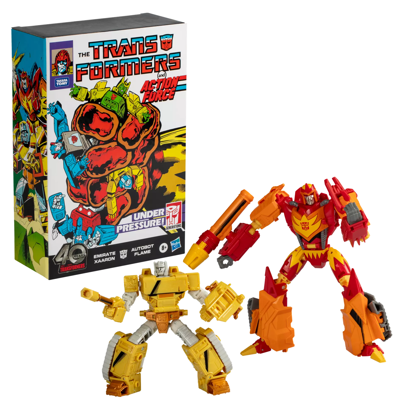 Comic book Transformers bots are stepping off the page and onto collectors’ shelves with Transformers Comic Edition Emirate Xaaron and Autobot Flame! Emirate Xaaron leads the Autobot Resistance movement. Flame lost his reputation as a scientist and is determined to carry out his master plans. TheseEmirate Xaaron and Autobot Flame action figures feature comic-accurate deco and details, celebrating 40 years since the first Transformers comics were issued in 1984. These comic-inspired action figures each convert from robot to Cybertronian tank mode and come with blaster, cannon, shield, and tank tread accessories.