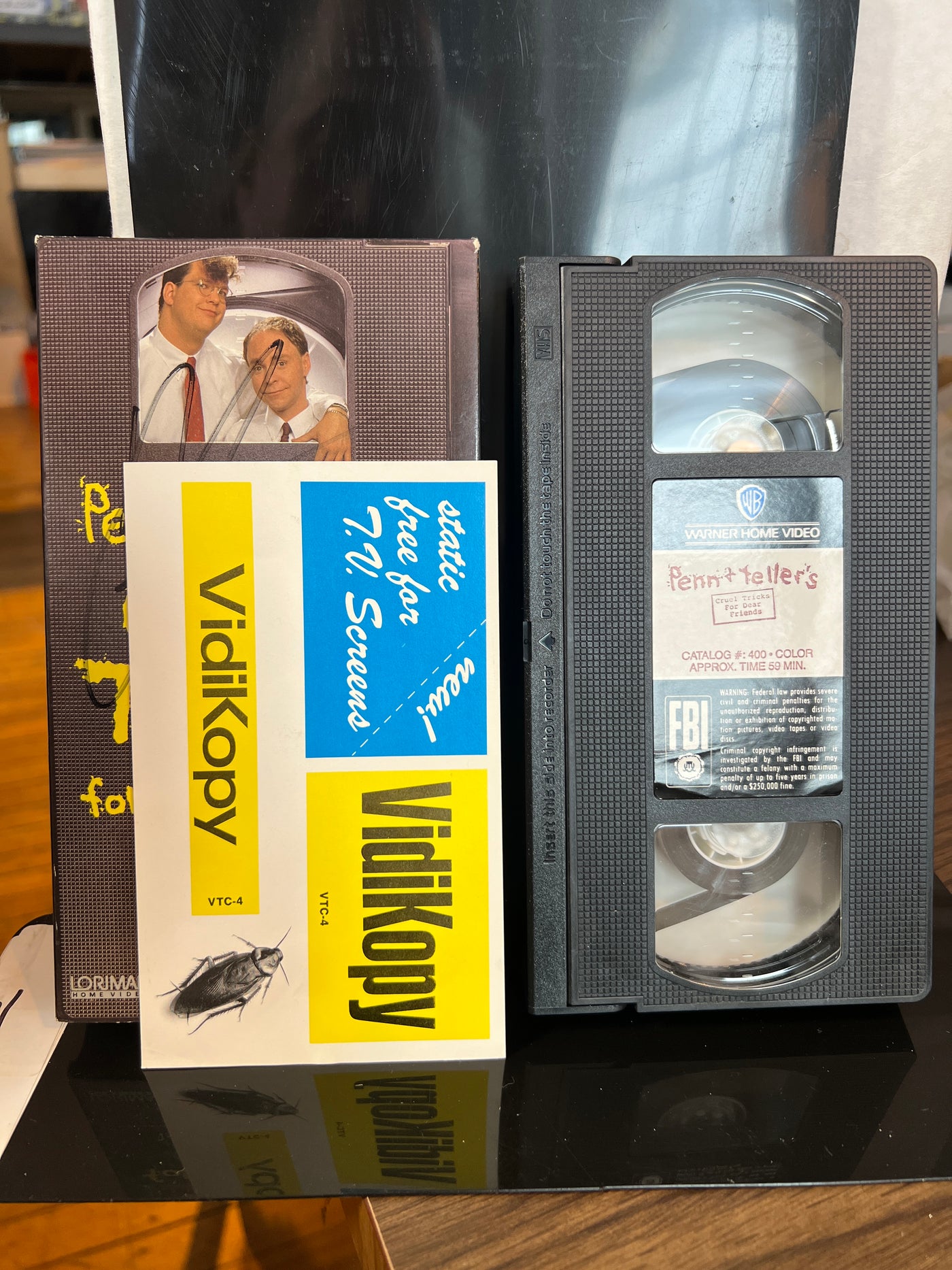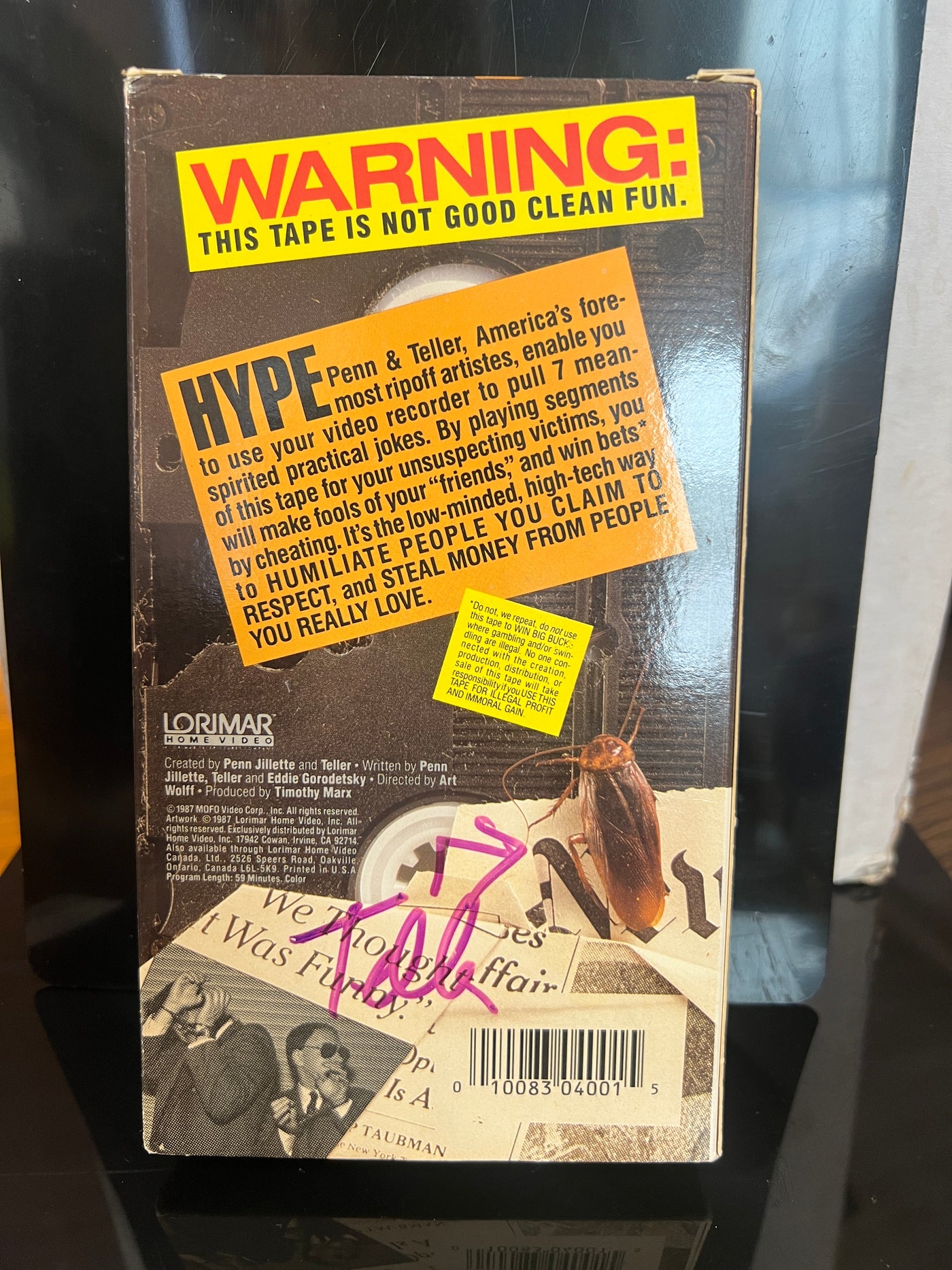 Tape and box are in almost new condition. Signed by Penn on the front & Teller on the back.