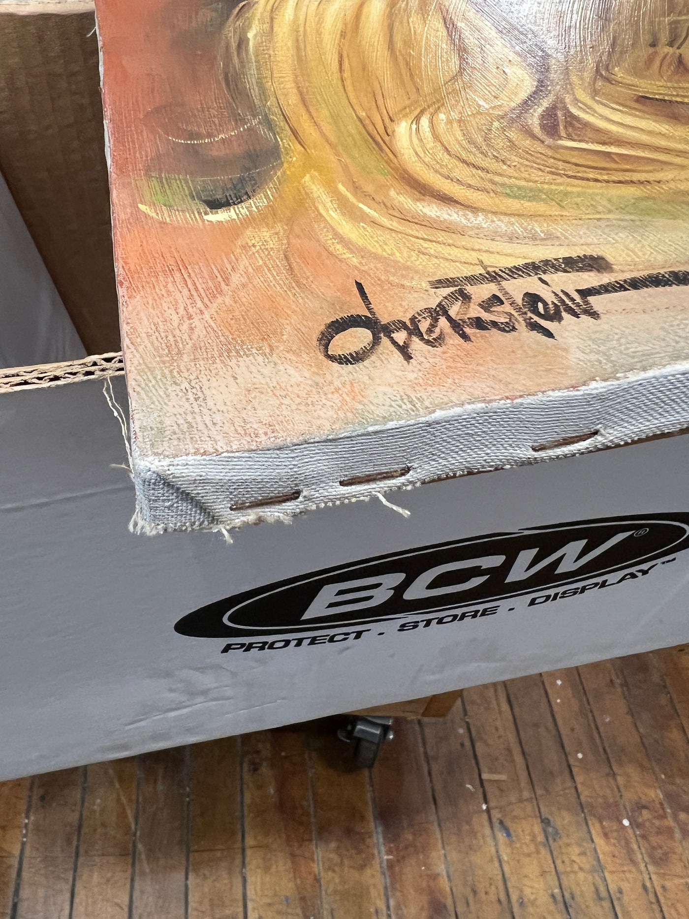 This is one of the classic subjects of a Chuck Oberstein painting. Little girl and clown. It seems to be inscribed to someone (Probably a little kid?) It has his stamp of authenticity (not a reproduction) It is an original painting as shown by the stamp, and signed on the front and back.