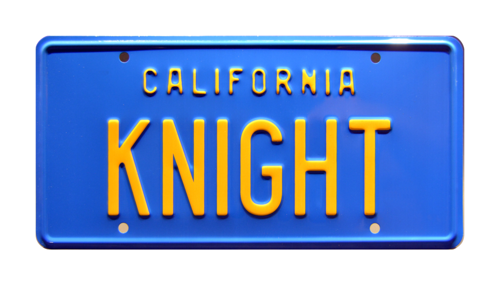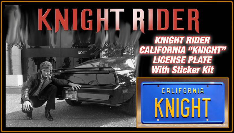 • The blue California KNIGHT License Plate is produced as seen on Michael Knight’s 1982 Trans Am in the television series Knight Rider.  Included with the plate is the correct California 1982 & May reflective registration sticker kit.