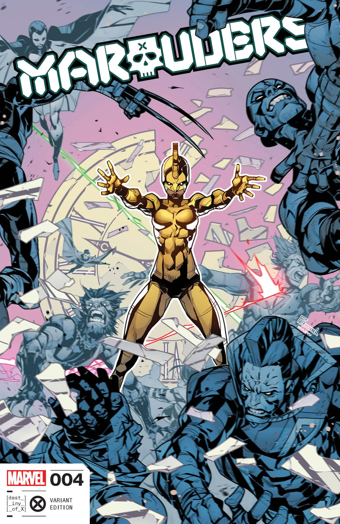 THE FIRST GENERATION OF MUTANTKIND? The Marauders have gotten some jailbreak mixed into their heist! Pryde and her crew might’ve convinced Xandra to confront the Shi’ar’s crimes against mutantkind together, but the fanatical Kin Crimson are ready to defend those secrets to the death. What hidden truths and horrors does the Shi’ar Chronicle hold? Deep in a pandimensional prison lies the answer—but will it unite two societies in progress, or destroy them both?