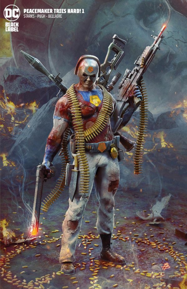Having earned his release from the Suicide Squad, Peacemaker wants to try and do normal superhero stuff for a change. Unfortunately everyone, including the bad guys, thinks he sucks at superhero stuff. But when busting up a terrorist ring introduces Christopher Smith to the cutest thing to ever walk (awkwardly) on four legs, he finds the unconditional love he’s been denied his whole life. That is, until the dog is kidnapped right out from under him by a super-villain who has some very un-super-heroic plans for Peacemaker’s brand of ultraviolence. Will he help an infamously unstable super-powered criminal steal the world’s most valuable—and dangerous—DNA? Honestly, Christopher’s pretty lonely, so it probably just depends on how nicely they ask…