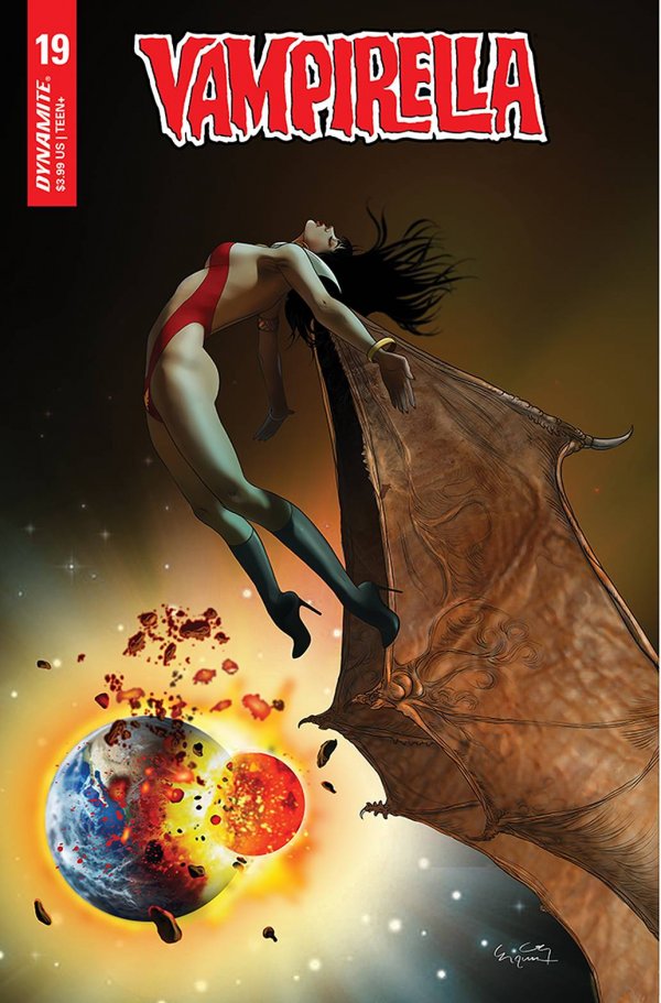 "Interstellar" concludes with Vampirella having to once again choose between saving her people, a world dying of blood drought, and protecting her adopted home world of Earth. The Vampiri have developed technology enabling them to breach the great divide between worlds, giving the dying Vampiri access to an endless supply of human "cattle." But which side will Vampi choose?